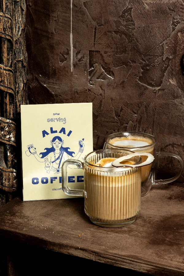 Our entire coffee menu has been designed by the Alai Coffee team. Each drink is an original creation inspired by India’s dessert traditions and nostalgic flavors like coconut from the coast, warm jaggery, fragrant pistachio, and monsoon spice integrated into modern specialty coffee formats that feel playful, familiar, and yet, completely new to Vancouver’s coffee scene!